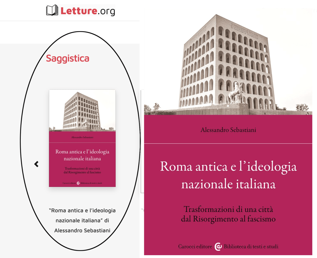 In a recent interview with Letture.org, I had the chance to discuss the themes of my latest book, Roma Antica e l’Ideologia Nazionale Italiana (Carocci). This volume examines the ideological reshaping of Rome’s classical monuments—from the Colosseum and Ara Pacis to the Mausoleum of Augustus and the EUR. The work explores how these structures were used to foster Italian identity and connect the modern nation with its ancient roots, illustrating the powerful role architecture played in crafting a sense of national pride.